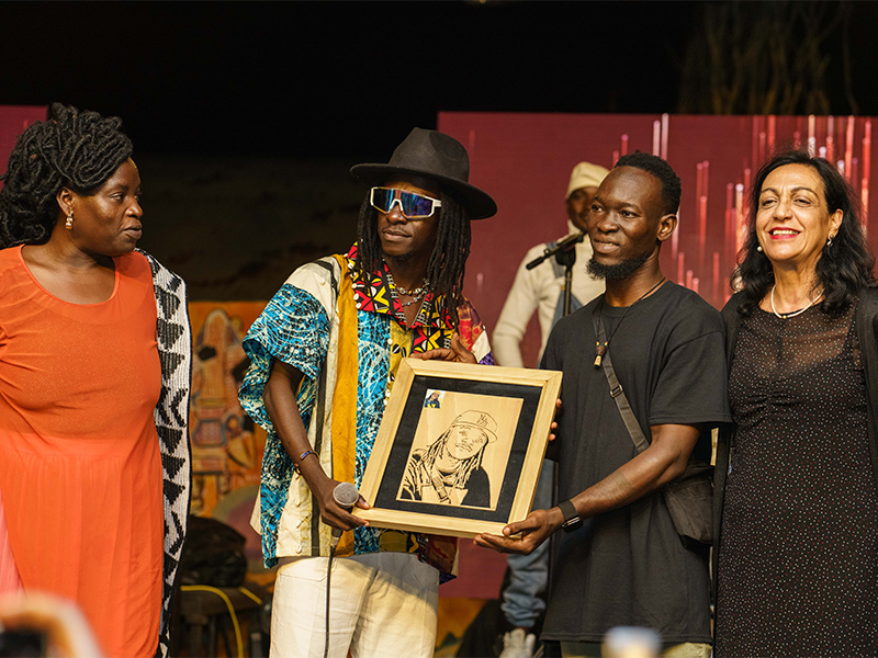Pour tout clôturer cette série de soirées projection/ concert, des portraits ont été offerts par Odin et Wandji de jeunes artistes fans du chanteur à ce dernier et à la présidente de Laboratorio Arts Contemporains, Madame Silvana Moi Vichaux.
